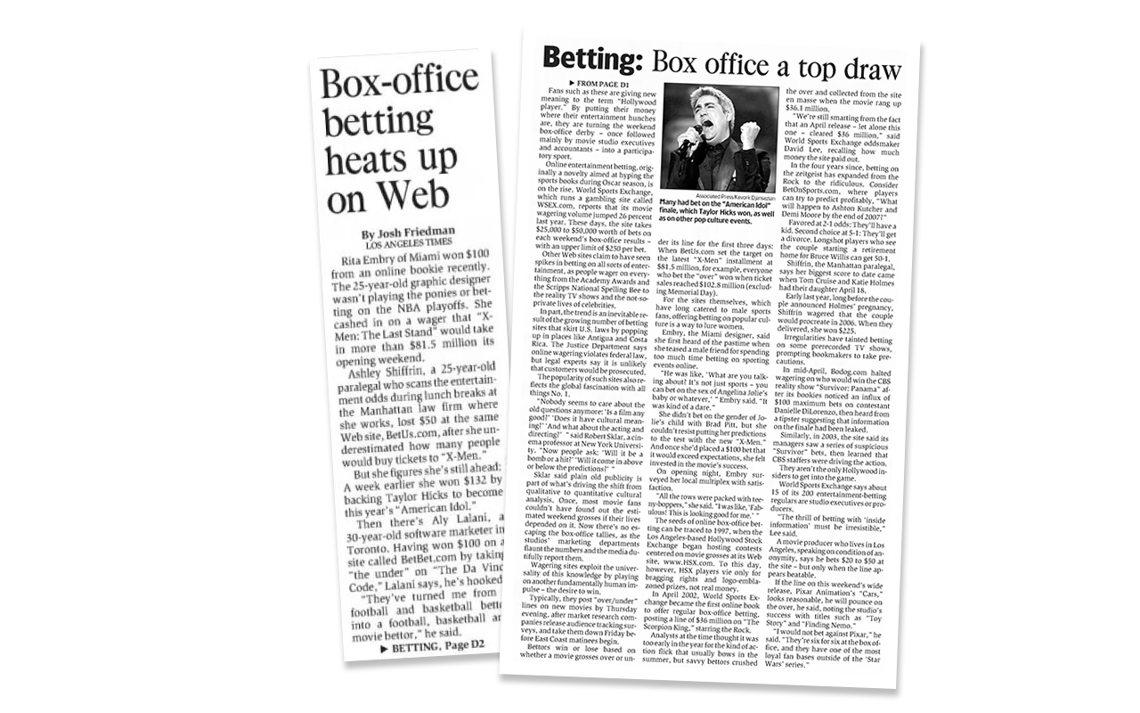 World Sports Exchange offered futures markets on everything including who would win American Idol